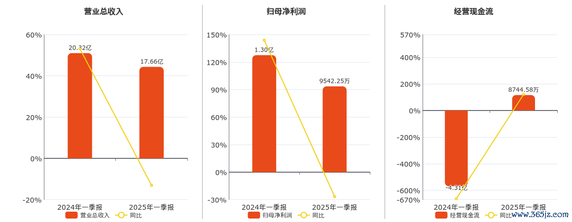公司营业总收入为17.66亿元,较去年同报告期营业总收入减少2.66亿元,同比较去年同期下降13.09%。归母净利润为9542.25万元,较去年同报告期归母净利润减少3470.73万元,同比较去年同期下降26.67%。经营活动现金净流入为8744.58万元。